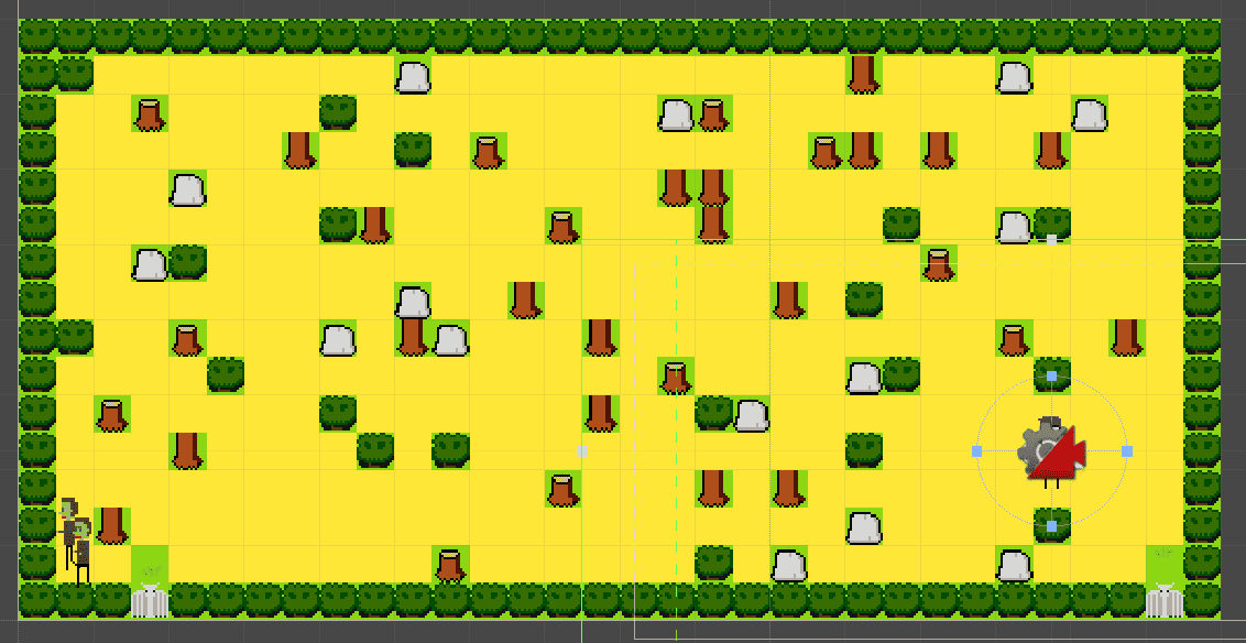 Using the PGCMap class’s properties, I also maintain simple subsets of “valid entity spawn points” (highlighted in yellow below):