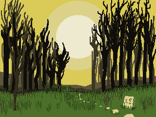 Using this palette I tried to create some concept art based on that. Although I’d say there are a bunch of influences I’d been drawing from for this game, I knew that some sort of forest biome should be a part of it. So I started by compiling a few reference images of “haunted forests” such as this one: