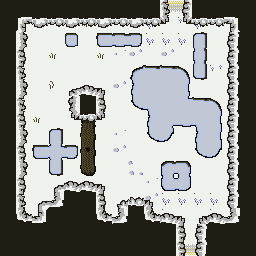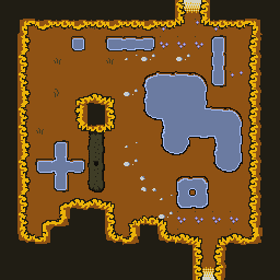 By swapping three of the greens in the palette with white and grays and the water color with a more pastel blue, I was able to change the tilemap to a “winter” setting. But seeing how decent this turned out, I decide to do one more palette swap and see if I could create an “Autumn” mood: