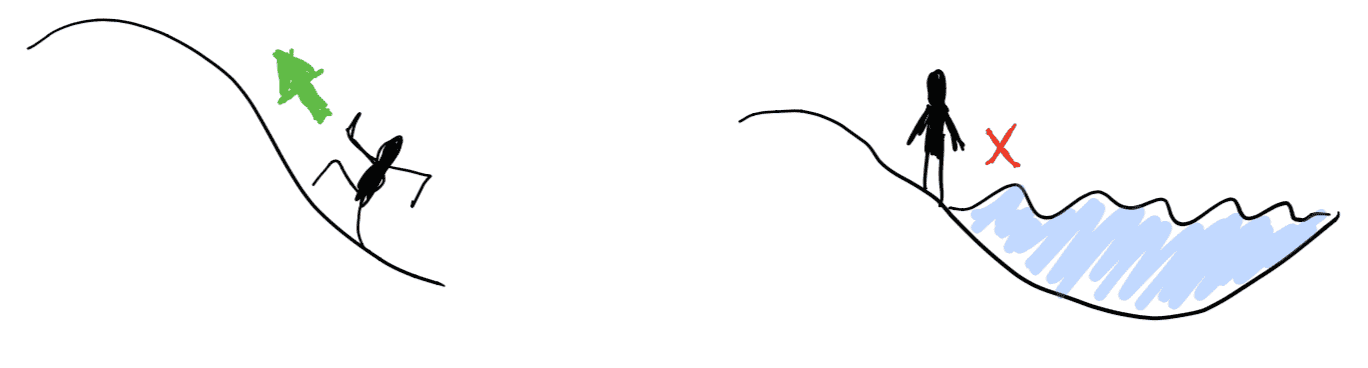 It would have certain regions that would be water and somehow impenetrable (the player character does not know how to swim perhaps.)